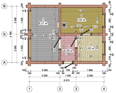 Баня из профилированного бруса с традиционной архитектурой и двускатной формой крыши. Вход в баню выполнен через открытую террасу — необходимость в отдельно-стоящей беседке попросту отпадает! В планировке предусмотрено все самое необходимое — комната отдыха, парная и мойка.