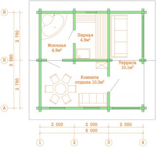 Иначе, как «Банный дом», эту баньку даже и не назвать. Она потрясает своей содержательностью, масштабом и оригинальным продуманным дизайном, в которой есть вся для здорового отдыха: парная, моечная, комната отдыха и даже с хозяйственное помещение. Всяк посещающий сие чудесное место, будет благодарен за приятное и полезное времяпрепровождение. Одним словом, эта баня из профилированного бруса — то, что надо!
