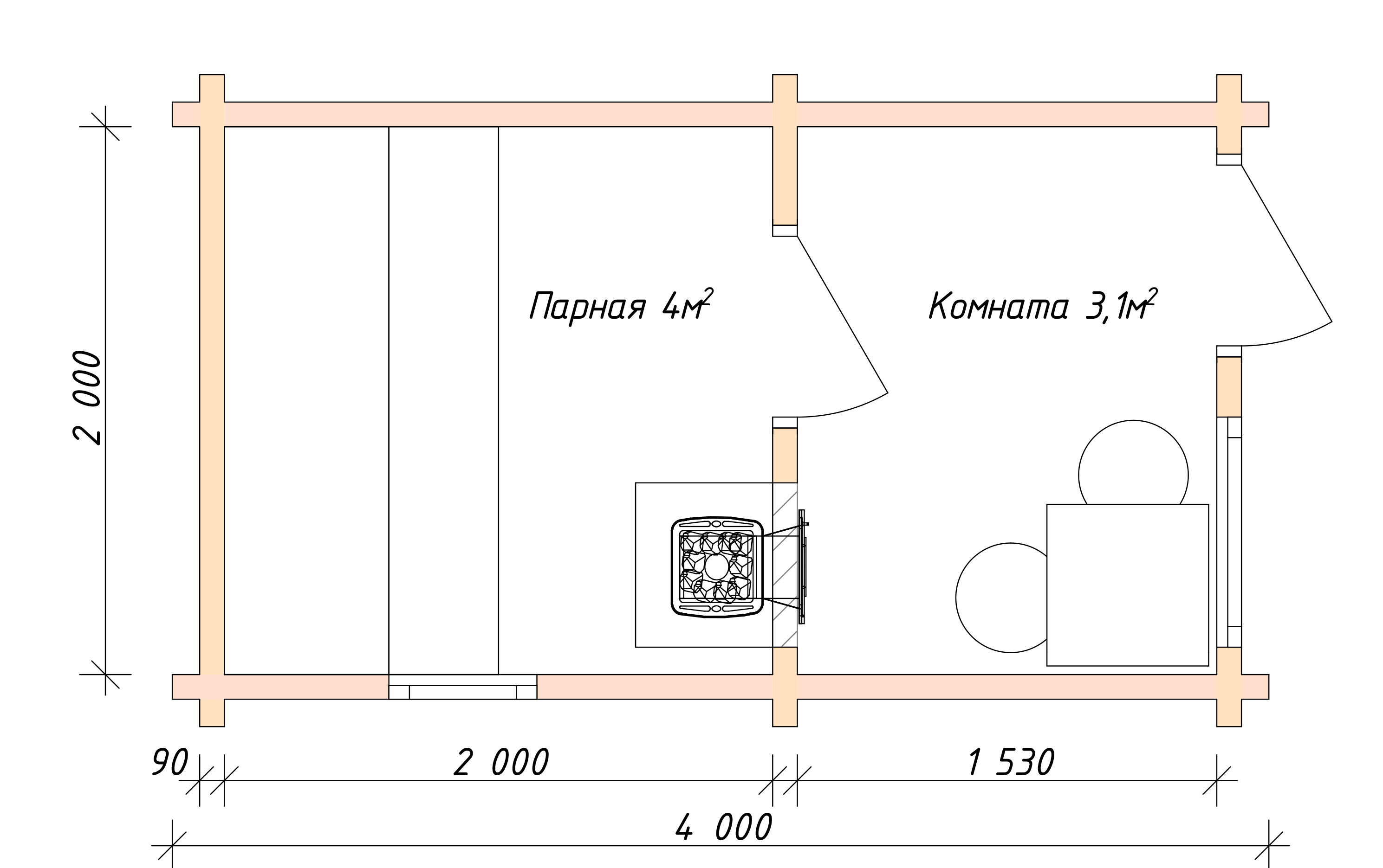 Стены Сухой профилированный брус 90*h140 мм. Материал — Ангарская Сосна. Между рядами сруба проложен утеплитель — термолен. Не требует дополнительной отделки и утепления! Подходит для межсезонья!