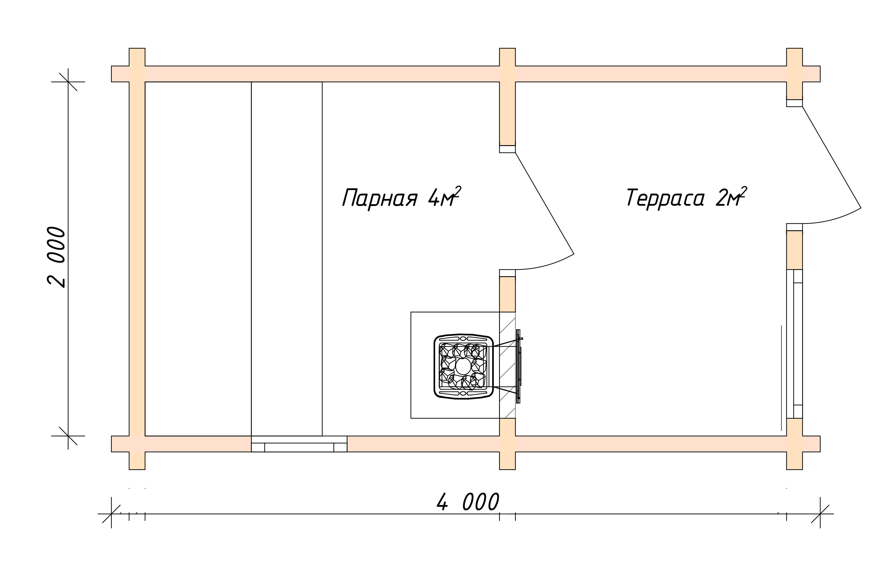 Высота потолка В комнате отдыха - 2,2 м, в парной - 1,9 м.